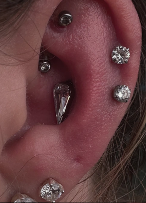 Kara’s favorite piercings to do are ear piercings—she loves the creativity and versatility of ear styling, from curated lobes to stacked cartilage looks.